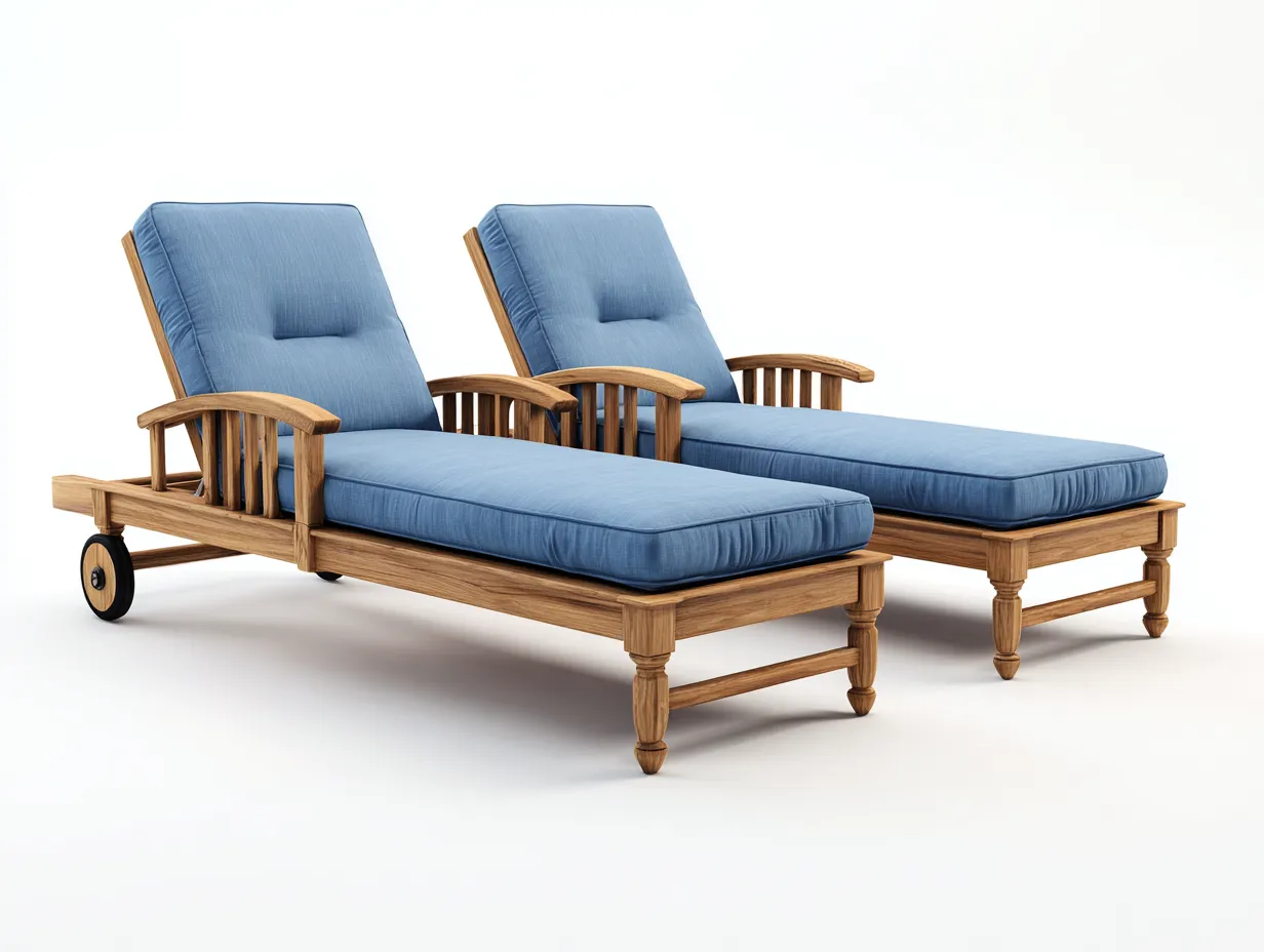 These outdoor sun loungers provide a comfortable and practical relaxation solution for gardens, poolside areas, and patios. The classic wooden frame combined with supportive cushions creates an inviting space for resting and sunbathing outdoors.